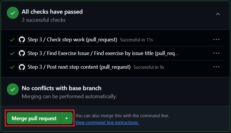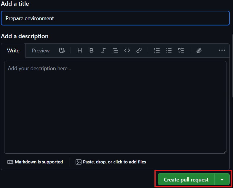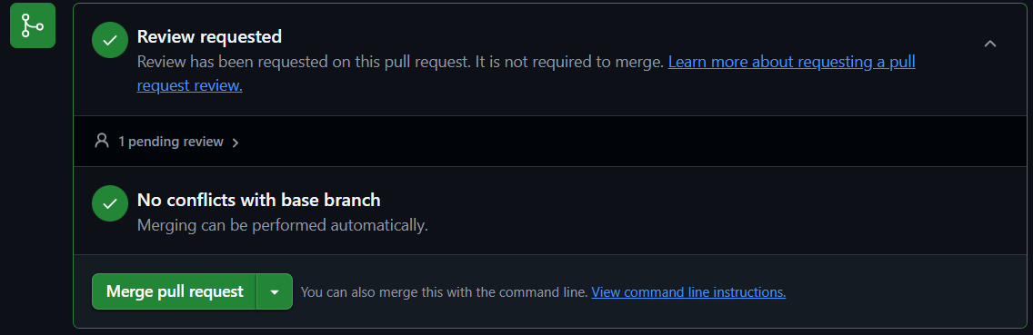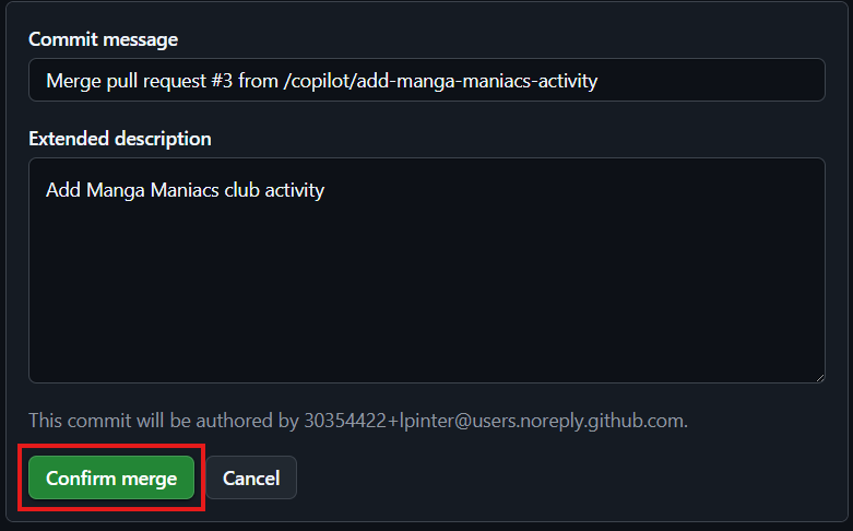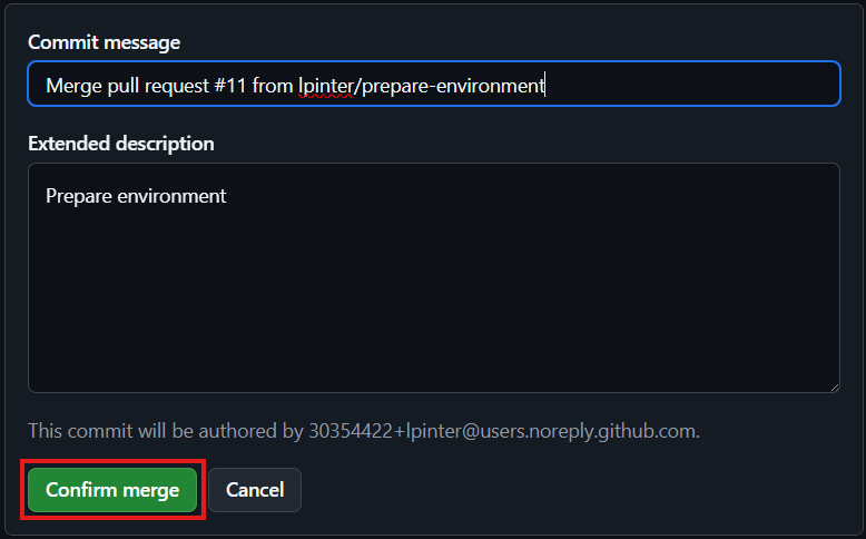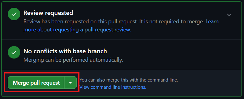 - If you are satisfied with the result scroll down to the bottom of the page and click the Merge pull request button
