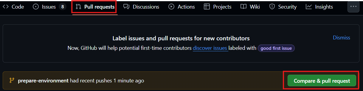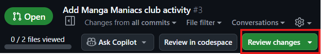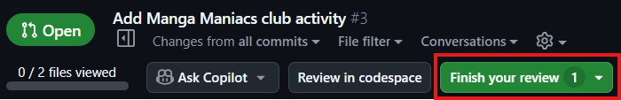- To go back from the session to the pull request, click the View pull request button at the top of the page