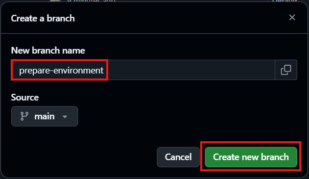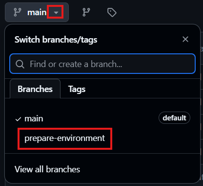 - Go back to the Code tab and click the down arrow on the current branch field and select the new branch