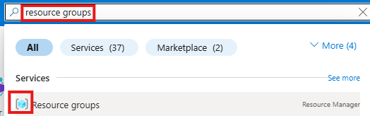 - In the main Azure page search for resource groups and select Resource groups from the list