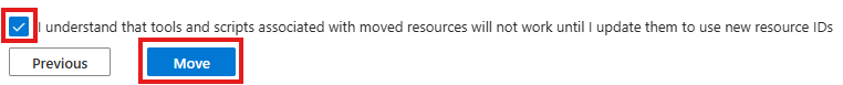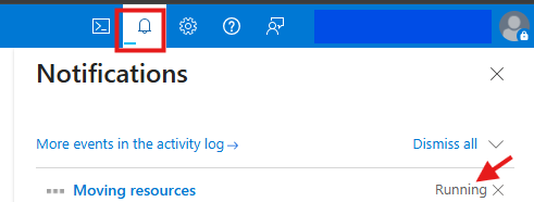 - To monitor the progress of the move click the Notifications icon. The source and destination resource groups are locked during the move, so only one move can be processed at a time.