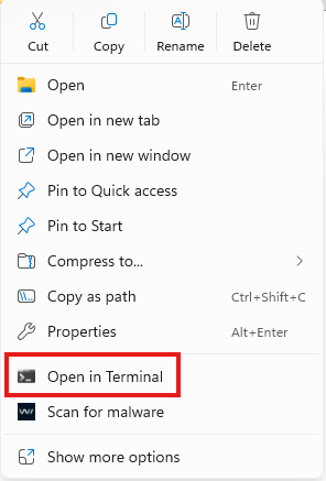 Open Windows Terminal from the start menu, or right-click on any folder in File Explorer and select Open in Terminal